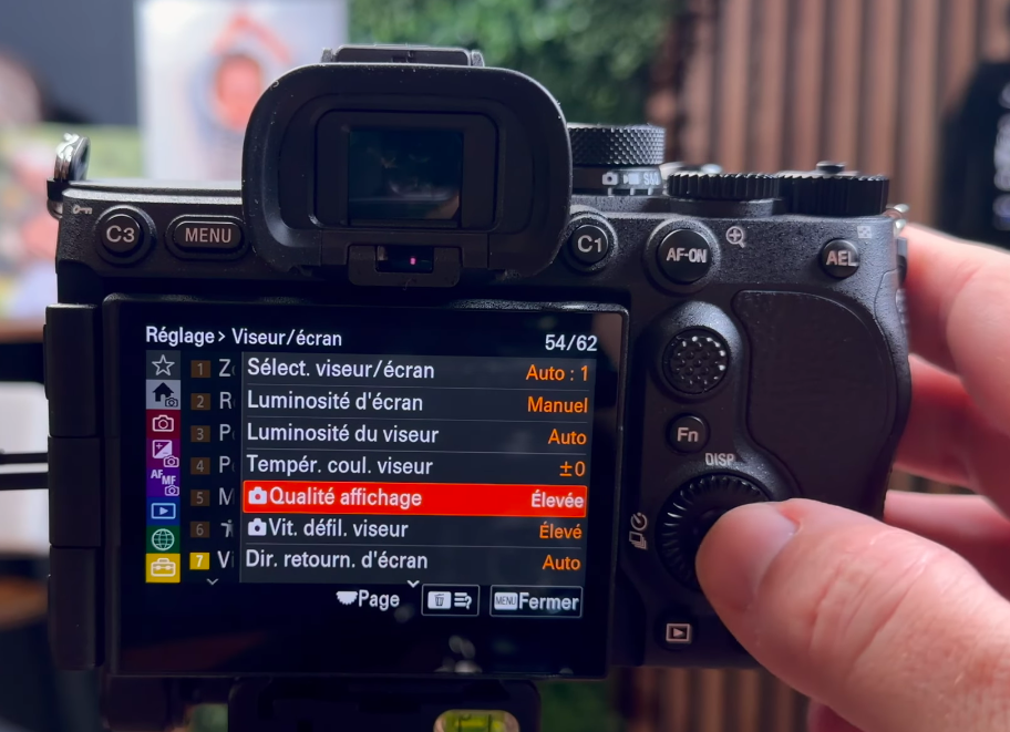 3 – Régler une qualité d’affichage élevée sur le viseur