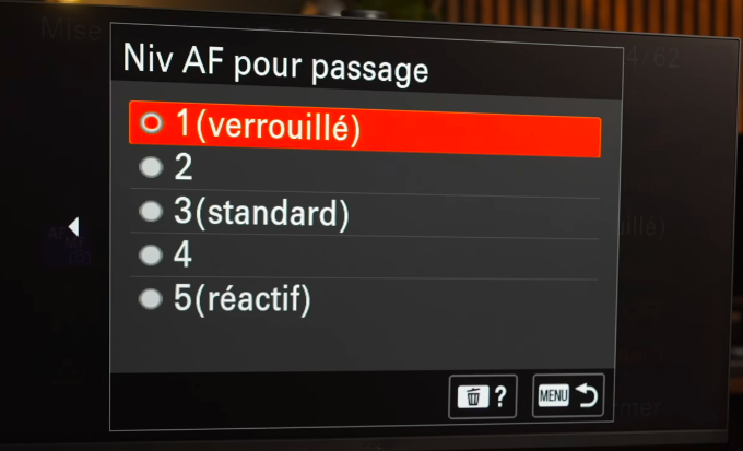 Par défaut, le réglage est sur standard. Mais si vous le passez sur 1 (verrouillé), le comportement de l’autofocus change complètement.